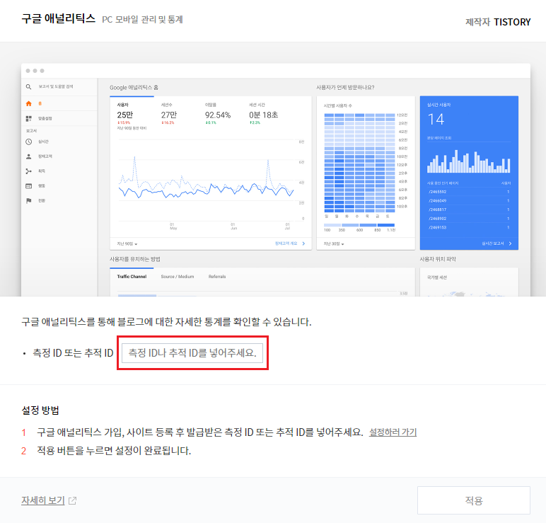 지금까지 구글 애널리틱스를 티스토리에 적용하는 법을 알아보았습니다.